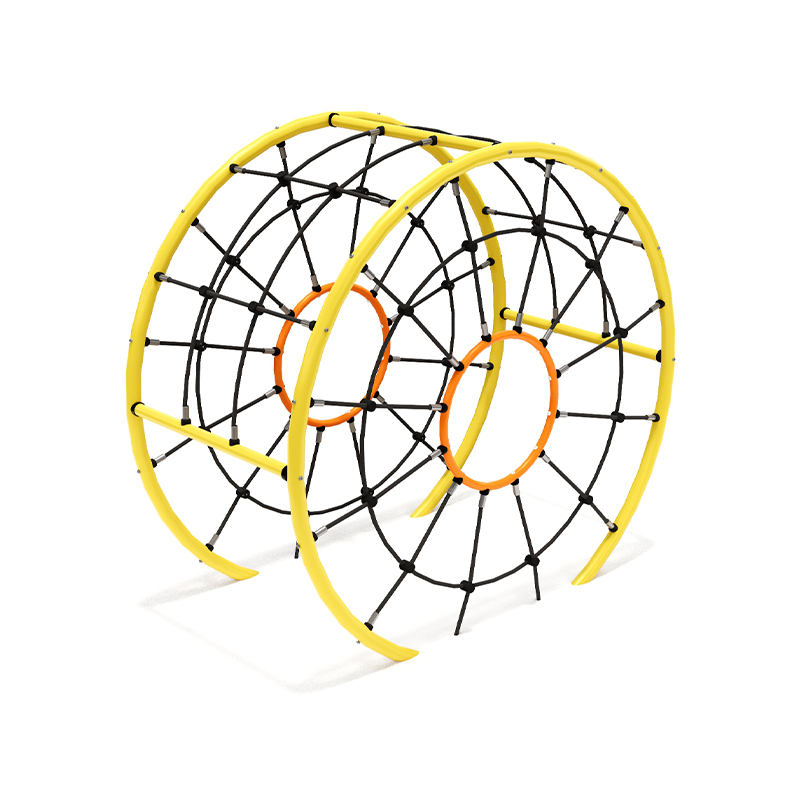 The Full Sun Climber is a unique, barrel-shaped rope net structure designed to build core balance and agility through dynamic movement. Its robust, brightly coloured powder-coated steel frame and durable Hercules Rope offers a fun, multi-user challenge that encourages crawling, climbing, and cooperative play. A bright, brilliant feature for modern playgrounds!