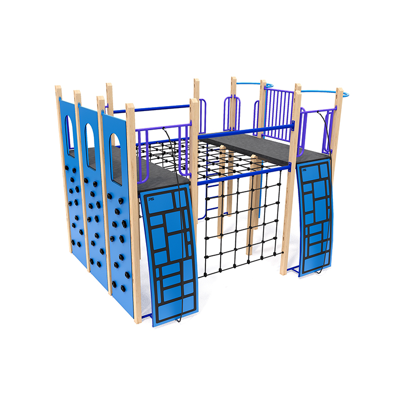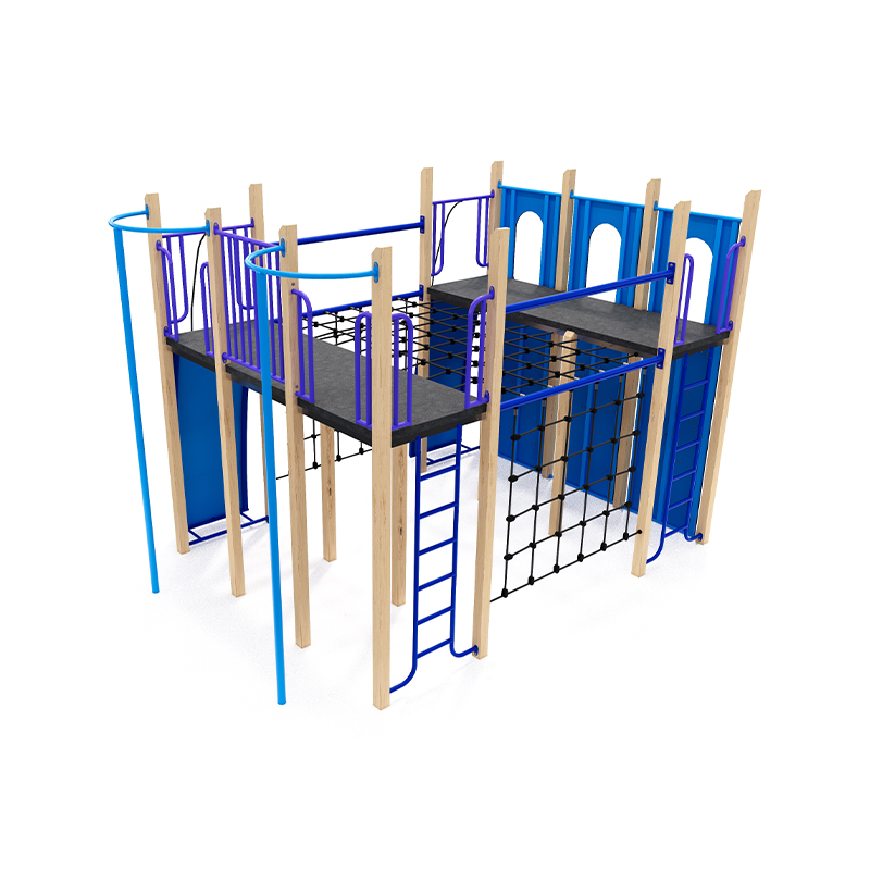 Take play to the next level with the Mega Cube, designed to challenge the most ambitious climbers and cater to a broad range of abilities. Designed with a towering timber-and-steel fortress aesthetic, this structure maximises vertical play and capacity in a focused area. It combines PolyPlay climbing walls and rope nets with safe, elevated decks. The Mega Cube provides a full-scale play environment built to absorb significant daily traffic while requiring minimal maintenance.