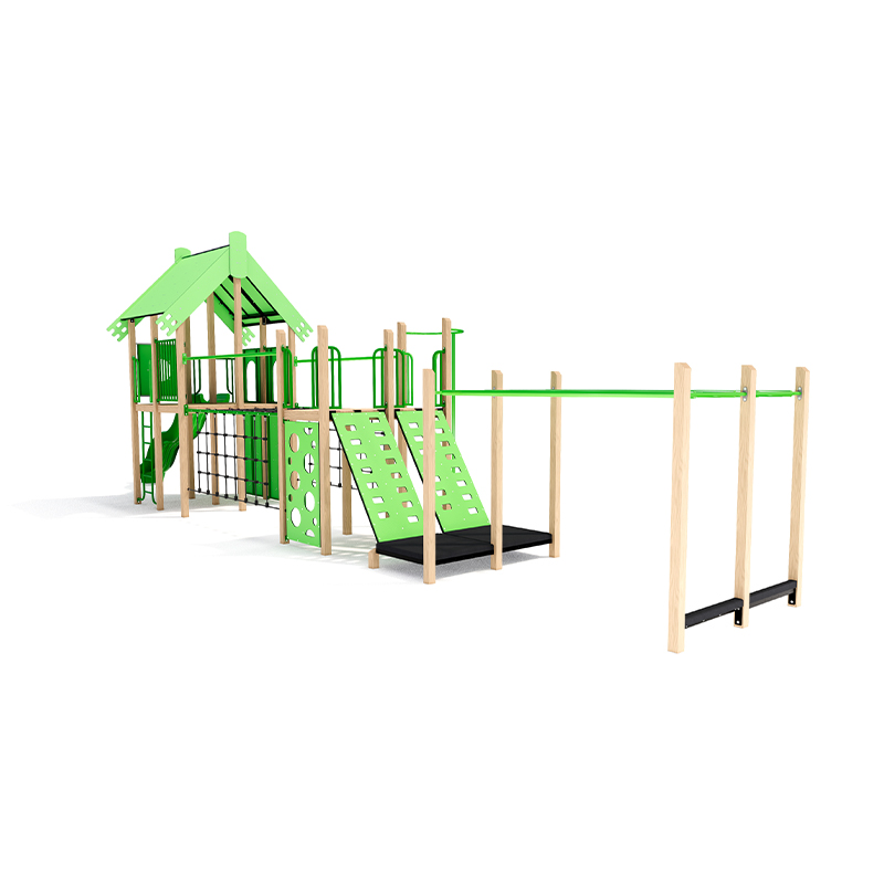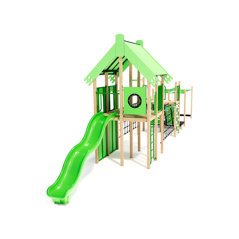 The Newton is the ultimate social hub for large playgrounds, featuring expansive multi-level platforms that can accommodate dozens of children at once, with the open-plan design allowing for group games and peer interaction. With lookout points like the tower porthole windows and sheltered spaces under the tower structure, it’s as much a place for social gathering as it is for physical fun.