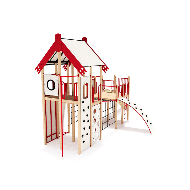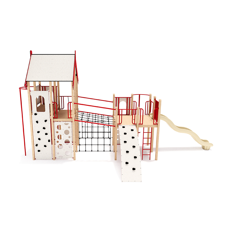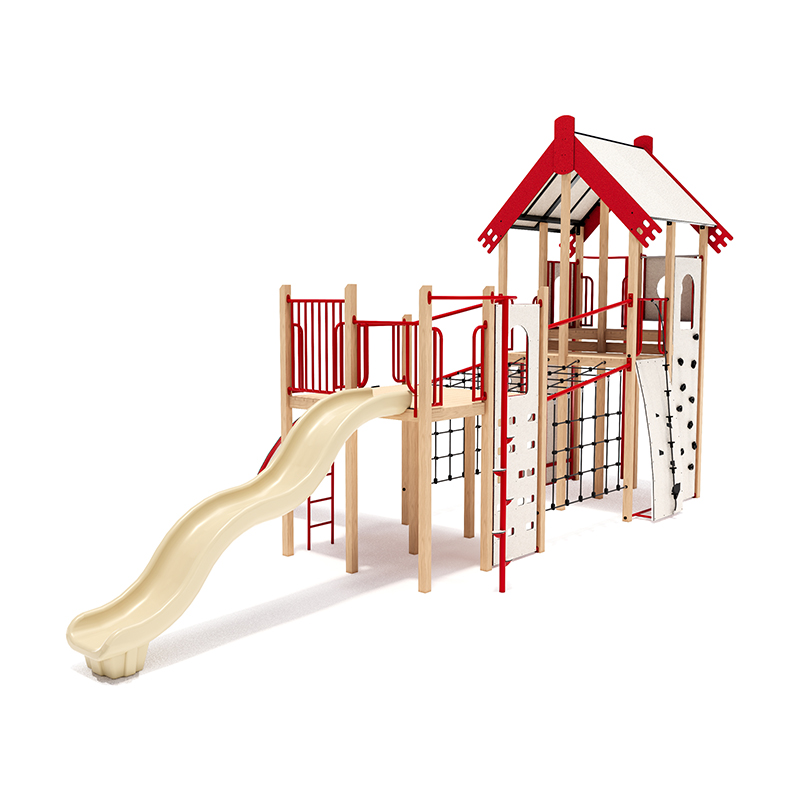 Designed for older children, the Redwood senior structure provides plenty of opportnities for strength, agility, and coordination. The unit features multiple advanced climbing elements, such as vertical rock-climbing panels, a curved climbing panel, and large rope nets. These diverse inclines, paired with the wave slide and firemans pole, challenge motor planning and build upper and lower body endurance in a safe, multi-level environment.