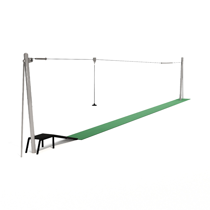 The Single Velocity Flying Fox delivers a long, exhilarating, high-speed ride across the playground. This classic attraction is essential for building confidence, grip strength, and upper body endurance as children hold on and glide. The design features heavy-duty steel posts, a durable cable system, and a specially designed safety launch platform and landing mat, ensuring a smooth, secure, and controlled experience from start to finish.