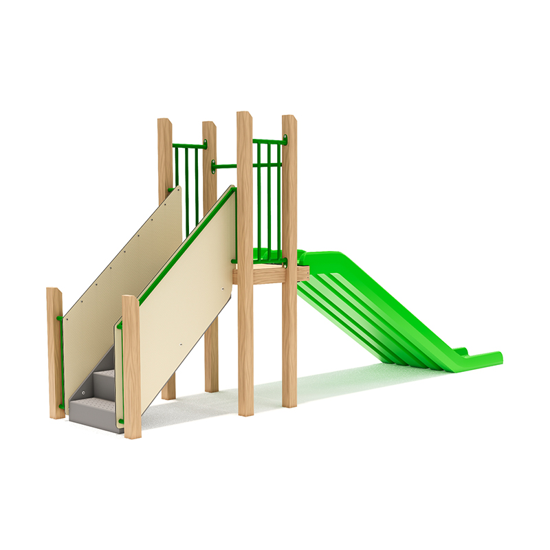 The Tower Slide 1.2m Double is a high-capacity unit featuring dual slides from a 1.2m platform, perfect for shared fun. The unit uses a safe, accessible timber access tower and durable coloured slides, making it a popular feature for active junior and middle-school playgrounds.
